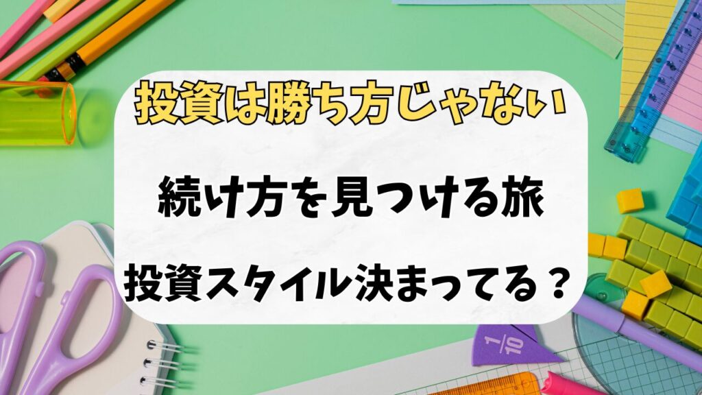 「投資って、人によってやり方が全然違うんですね。自分に合った“投資スタイル”って、どう見つけたらいいんですか?」 ──読者の〇〇さんから、こんな質問をいただきました。 • 流行りの投資にすぐ飛びついて後悔した • SNSで“あの人”が儲かってるのを見て...