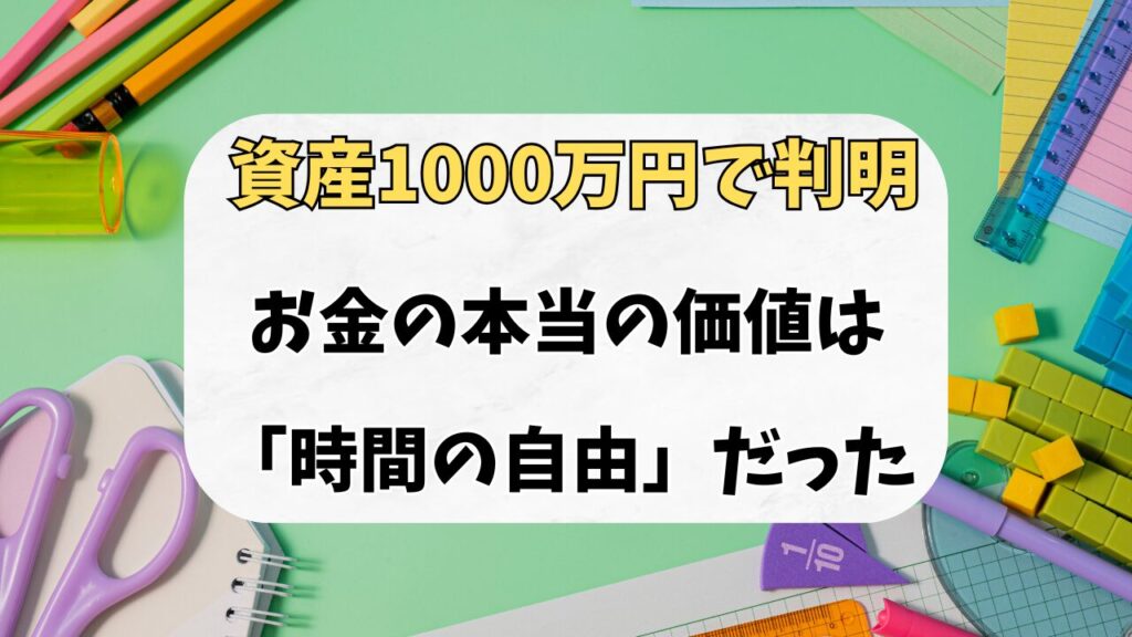 「投資をやっていて本当に良かった。」 資産が1000万円を突破した今、心からそう感じています。 かつては「お金=贅沢をするためのもの」だと思っていました。しかし、実際に資産を積み上げていく過程で気づいたのは、お金がもたらす本当の配当は「モノ」... -