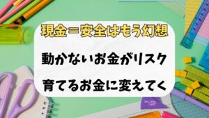 もちろん、数年以内に使う予定があるお金や、生活防衛費としての貯金は必要です。しかし、それ以外のお金をただ眠らせておくのは、今の時代「大きなリスク」を抱えているのと同じです。インフレ時代において、貯金だけで資産を守ることはできません。何もしなければ、気づかないうちにお金の価値は毎年少しずつ削られていきます。