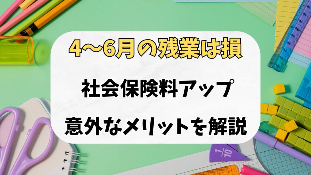 「4月、5月、6月は残業しないほうがいいよ」 この時期になると、職場の先輩や同僚からそんなアドバイスをもらったことはありませんか? 確かに、この3ヶ月間の給与で1年間の社会保険料が決まるため、残業代で額面が増えると、その分引かれる税金や保険料も...
