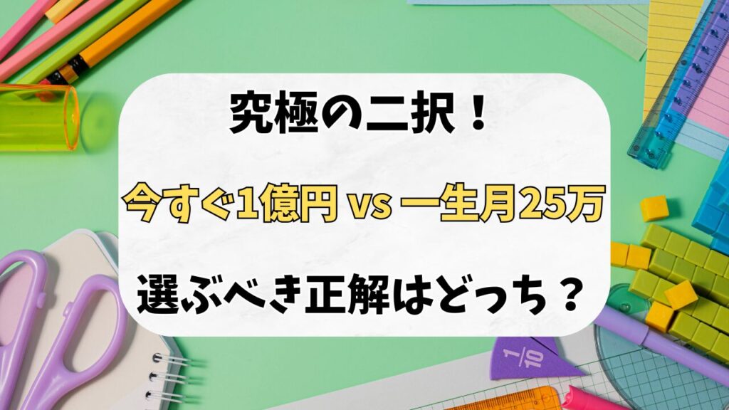 「今すぐ1億円」vs「一生月25万円」どっちがお得?金融リテラシーで差がつく究極の選択
